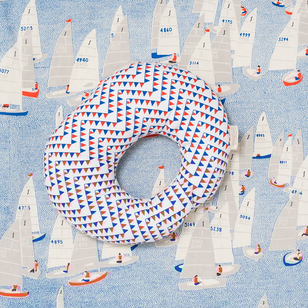 This baby quilt from Safomasi features a beautiful sail boat illustration and can be used for baby bedding or a play mat. Soft to touch, hand quilted and filled with cotton wadding, this baby quilt is perfect for Summer. The print was inspired by designer Sarah Fotheringham's family holidays on the south west coast of England. The print features boats racing around the estuary and the reverse side, a bunting-inspired Ferry Flag print.