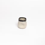 This handmade ceramic tumbler is perfect for hot and cold beverages and has been crafted from Claymen's studio in Delhi, India. The hand moulded cup is clear glazed on the interior and exterior and accented with contrast black rim. The design is sculpted to perfectly fit in your palm for comforting refreshments.