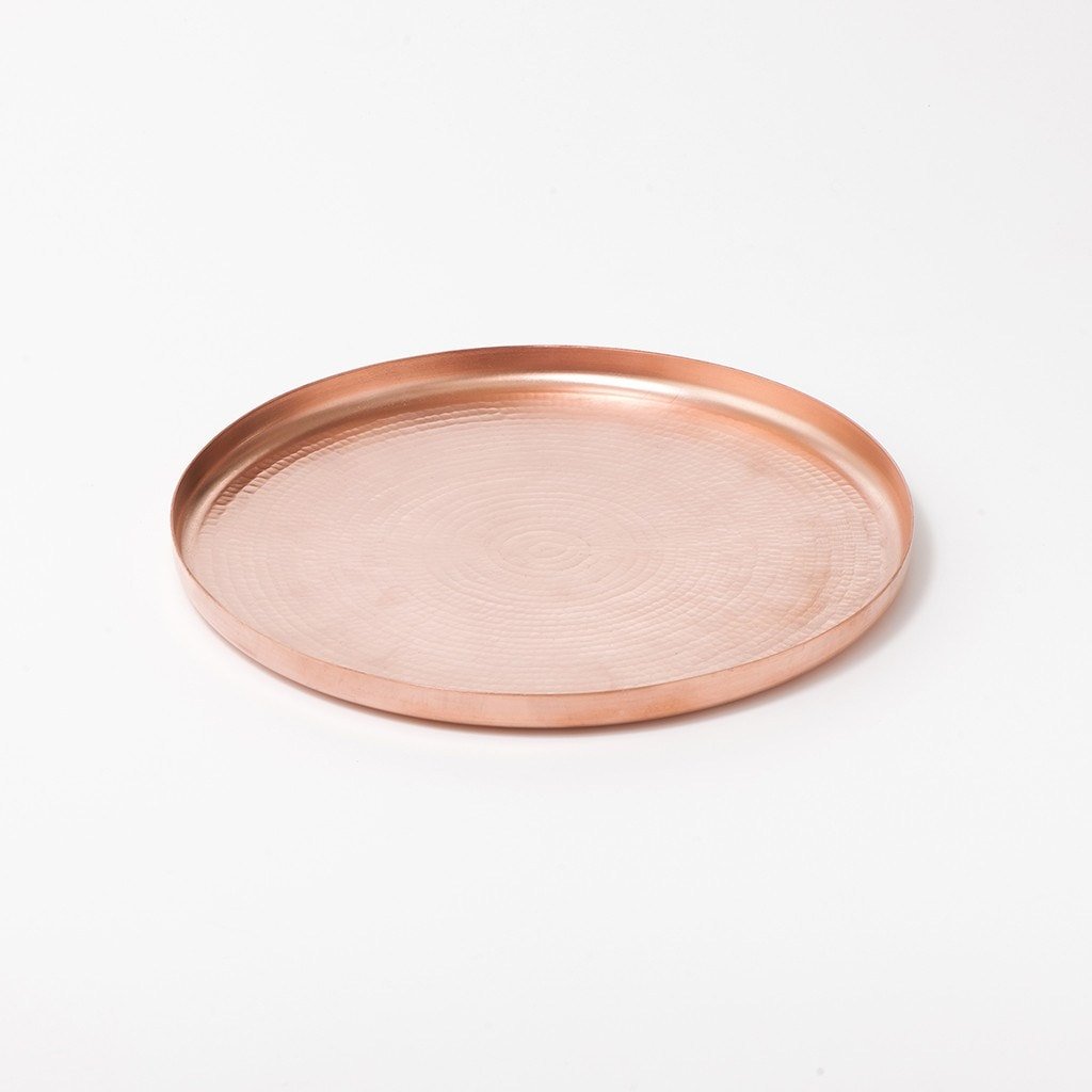 This hammered copper serving tray, can be used as a decorative tray or for serving drinks or dry food at parties. Also referred to as a thali tray, its is considered an essential part of Indian culture to serve an elaborate, festive meal when friends and family get together.