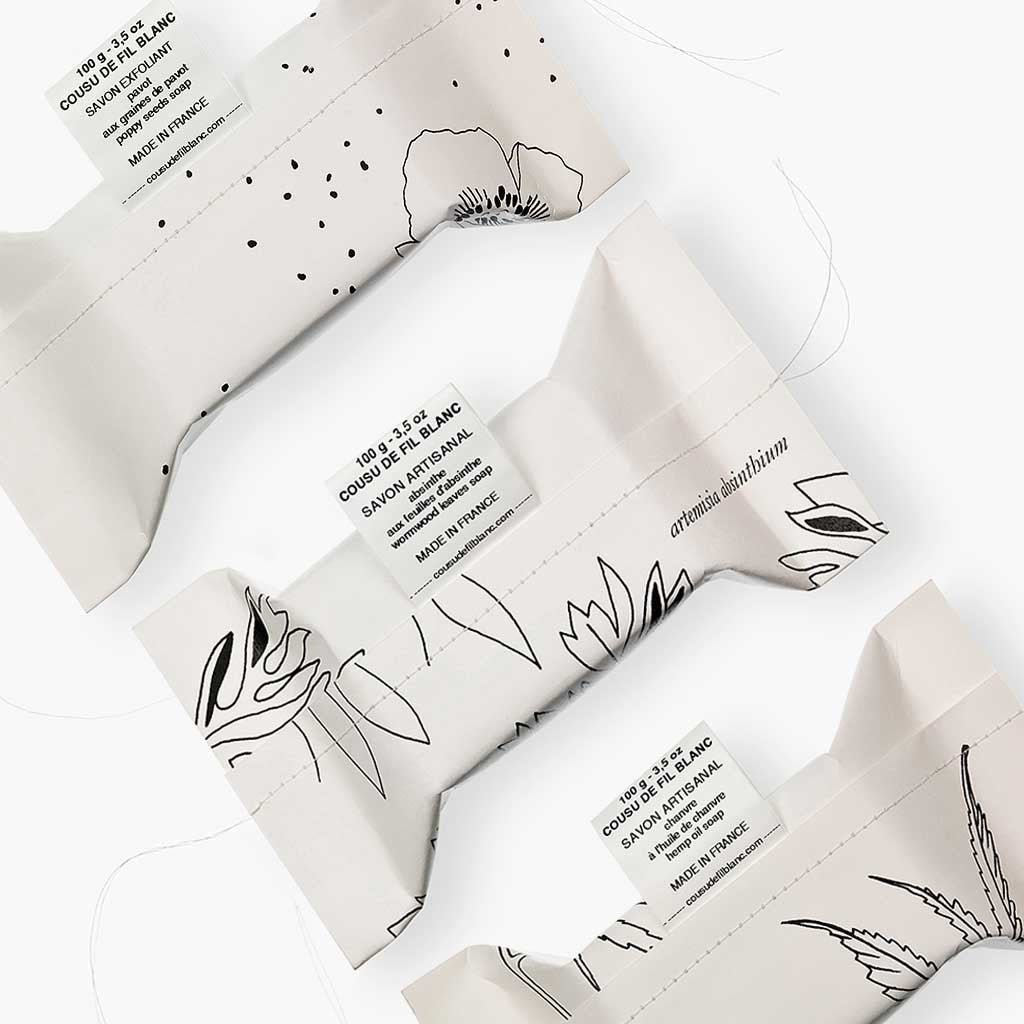 A natural handmade soap gift set from Cousu de Fil Blanc, the Les fleurs du Mal Collection includes absinthe, hemp and poppy. Full of essential and invigorating oils for fresh sensations these beauty bars are handcrafted in Paris and wrapped in beautiful illustrated paper packaging.