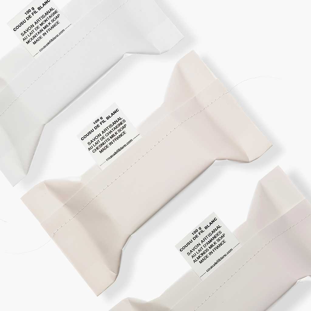 A natural handmade soap gift set from Cousu de Fil Blanc, the White Collection includes almond milk, mountain milk, chestnut milk. Discover essential and invigorating oils for fresh sensations that are extra gentle on the skin. Cousu de Fil Blanc soaps are handmade in Paris and wrapped in beautiful illustrated paper packaging.