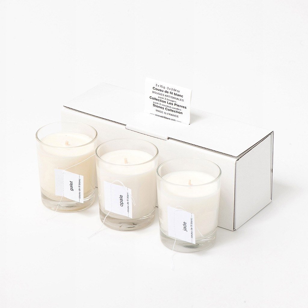This handmade soy candle gift set from Cousu de Fil Blanc features three refreshing scents; jade, opal and pebble. Created by French aromatherapist and textile designer Carole Dichampt, each divine scented candle is hand made and poured by French artisans using 100% vegetable soy wax and an organic cotton wick.
